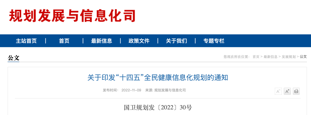 11月9日,國家衛(wèi)健委、國家中醫(yī)藥局、國家疾控局聯(lián)合發(fā)布《“十四五”全民健康信息化規(guī)劃》(以下簡稱《規(guī)劃》),部署八大主要任務(wù)、五項重點工程及八大優(yōu)先行動。