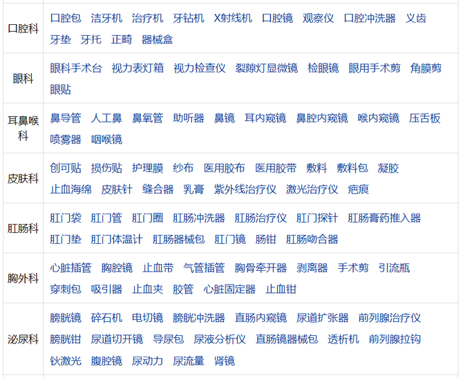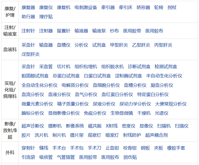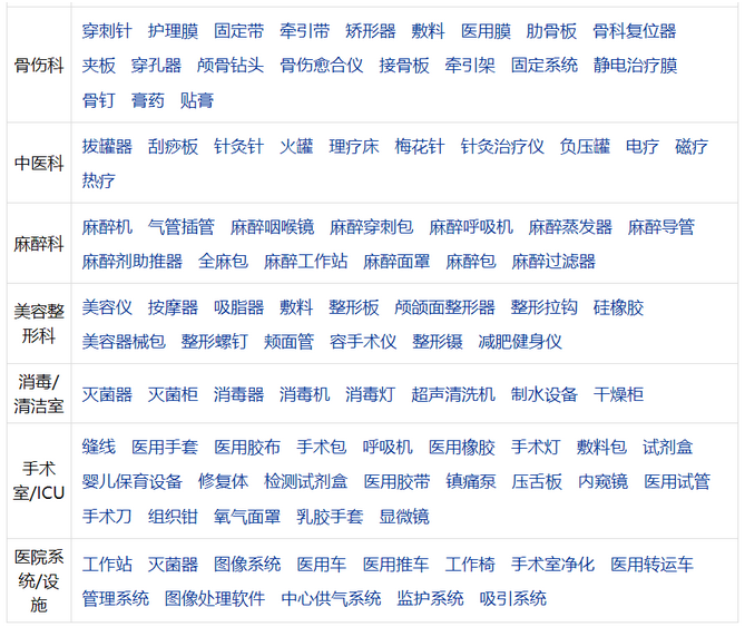 下附:各科室用醫(yī)療器械清單(來源:藥源網(wǎng))