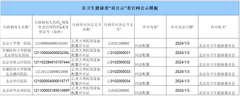 北京衛(wèi)健委1月公布了一批乙類大型醫(yī)用設備配置審核結果。