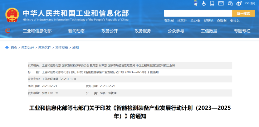 2月23日,工信部等七部門發布《智能檢測裝備產業發展行動計劃(2023—2025年)》(以下簡稱《行動計劃》)。