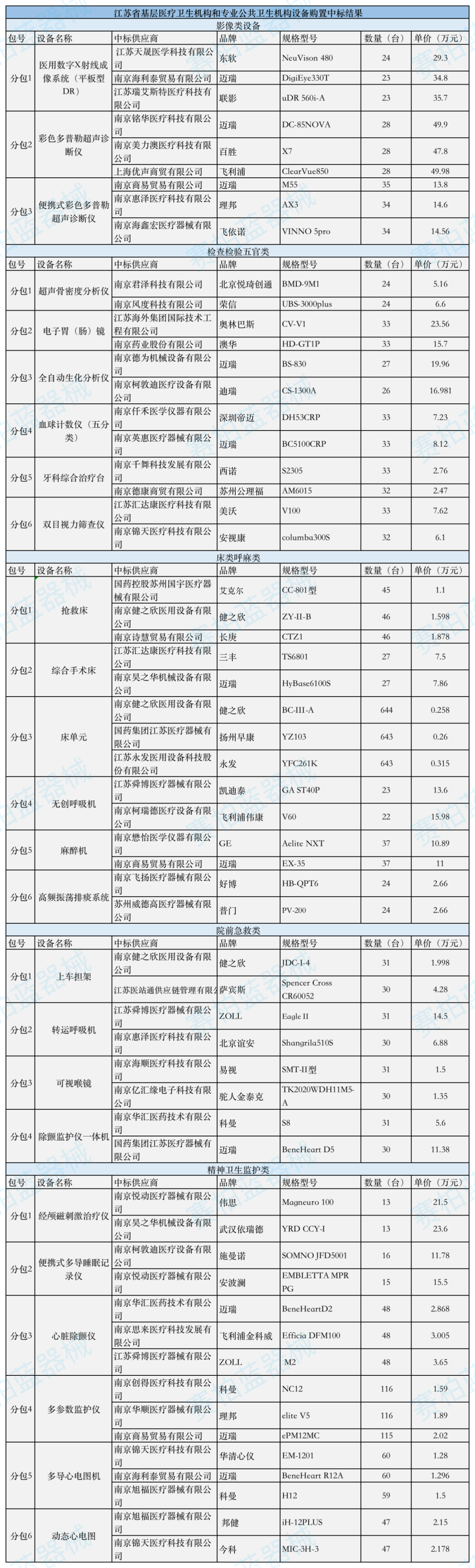 近日,江蘇省衛生健康委員會(廳本級)江蘇省基層醫療衛生機構和專業公共衛生機構設備購置項目中標結果公布。