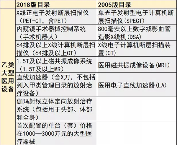 4月9日,國家衛健委發出關于發布《大型醫用設備配置許可管理目錄(2018年)》的通知,新版甲類、乙類大型醫用設備的管理品目正式出爐。
