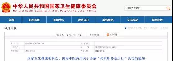 為深入貫徹落實黨的十九大和《“健康中國”2030規劃綱要》精神,持續提升基層服務能力,改善服務質量,國家衛生健康委、國家中醫藥局決定開展“優質服務基層行”活動?,F將有關事項通知如下: