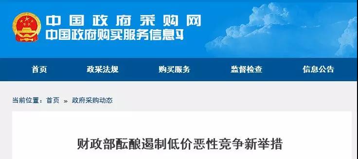 近日,中國(guó)政府采購(gòu)網(wǎng)發(fā)布最新通告《財(cái)政部醞釀遏制低價(jià)惡性競(jìng)爭(zhēng)新舉措》。