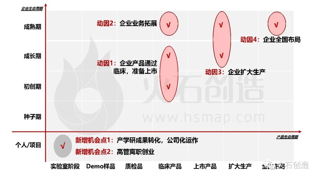 這個階段的醫藥企業對應的產品大多處于臨床I期和II期階段,醫療器械企業對應的產品基本處于產品注冊臨床申報階段。