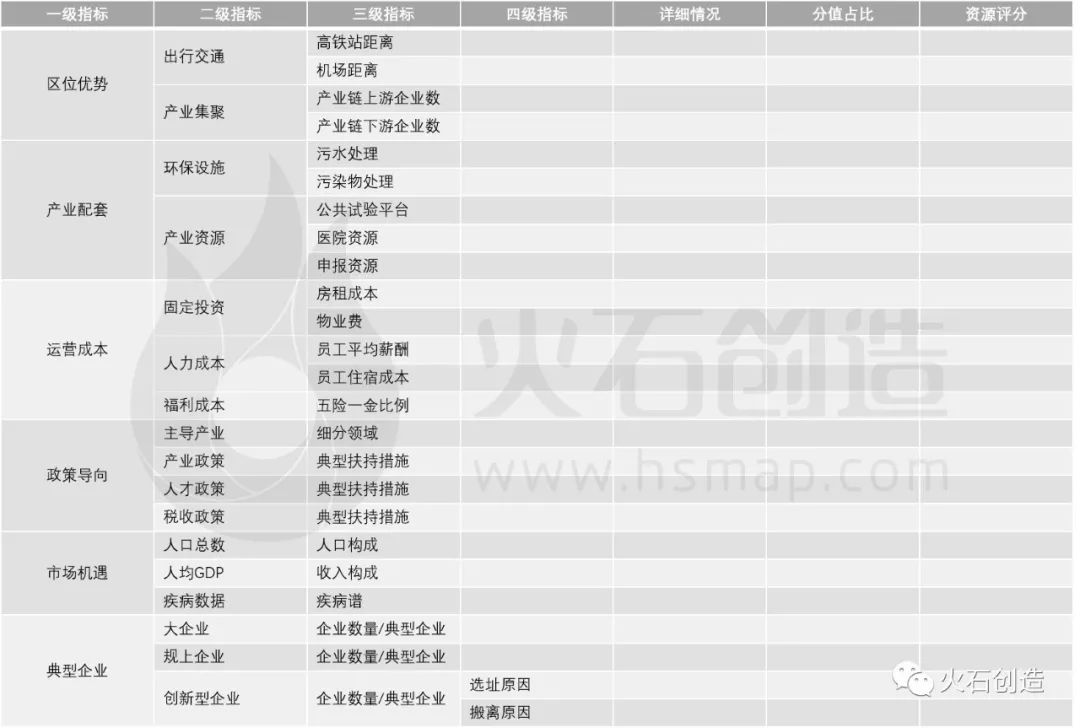 深入研究企業選址決策邏輯,協助企業做出科學合理的投資選址方案,需要建立一個系統的科學量化指標,因為不同階段的生物醫藥企業對承載空間、產業資源、政策支持等方面的需求也不盡相同。
