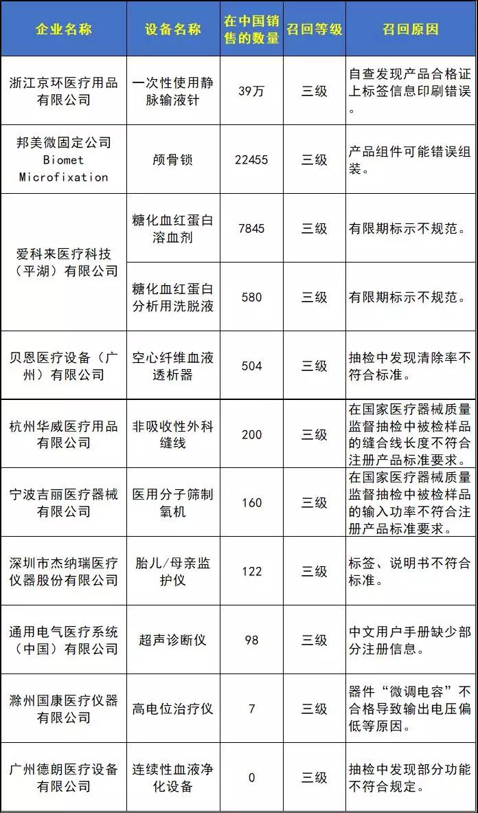 10家醫療器械公司召回了過萬件產品