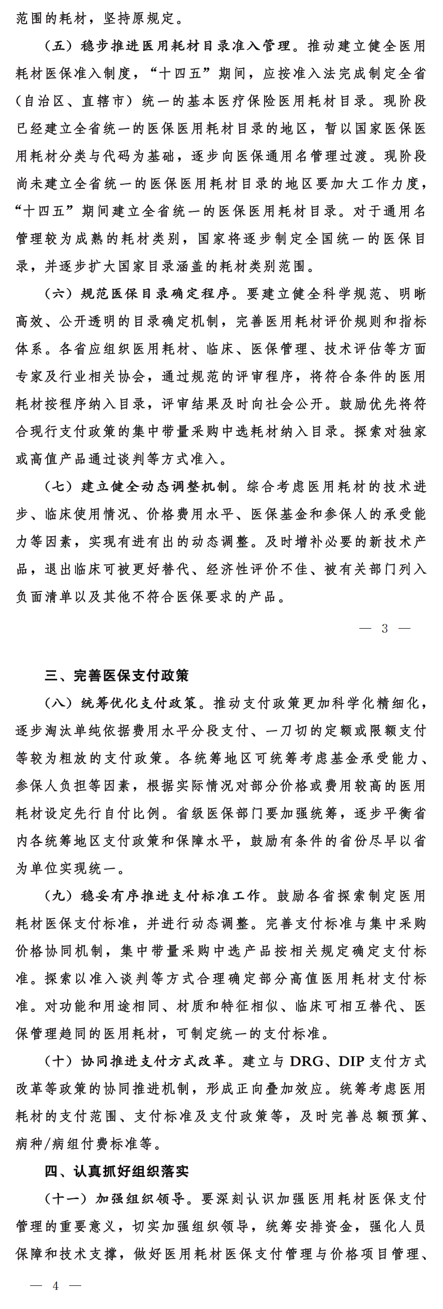 協同推進支付方式改革。建立與DRG、DIP支付方式改革等政策的協同推進機制,形成正向疊加效應。統籌考慮醫用耗材的支付范圍、支付標準及支付政策等,及時完善總額預算、病種/病組付費標準等。
