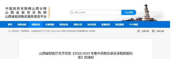近期,山西省財(cái)政廳發(fā)布了《2022-2023 年集中采購(gòu)目錄及采購(gòu)限額標(biāo)準(zhǔn)》的通知(以下簡(jiǎn)稱通知)。