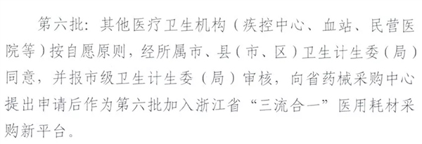 而從下個(gè)月開(kāi)始,“三流合一”采購(gòu)新機(jī)制的實(shí)施范圍,就要由6家試點(diǎn)醫(yī)院擴(kuò)展到浙江全省政府辦各級(jí)各類公立醫(yī)療機(jī)構(gòu)了。