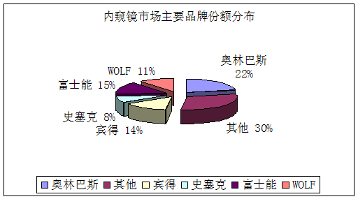 外資品牌從產品、技術到服務都占據(jù)絕對的優(yōu)勢,其中奧林巴斯(22%)、賓得(14%)、富士能(15%)、卡爾史托斯、WOLF(11%)以及史賽克(8%)6大品牌占據(jù)了主導地位。國內品牌雖然在價格上占有優(yōu)勢,但技術水平仍然是軟肋,加之銷售渠道的開拓能力也無法與外資品牌媲美,因此市場占有率很低。