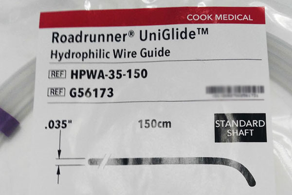 該產品由芯絲、包被和親水涂層組成,配有導絲扭控器。芯絲由鎳鈦合金制成,包被的材料為聚亞氨酯和鎢,涂層的材料為聚乙烯吡咯烷酮。環氧乙烷滅菌,一次性使用,產品有效期3年。