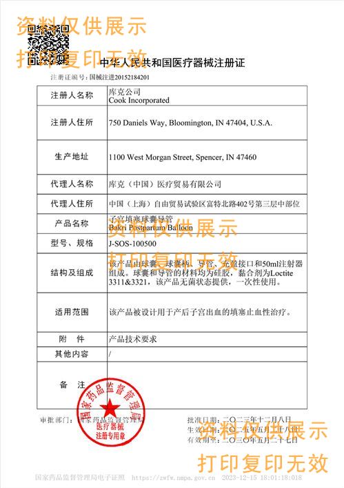 美國庫克Bakri 子宮填塞球囊導管J-SOS-100500