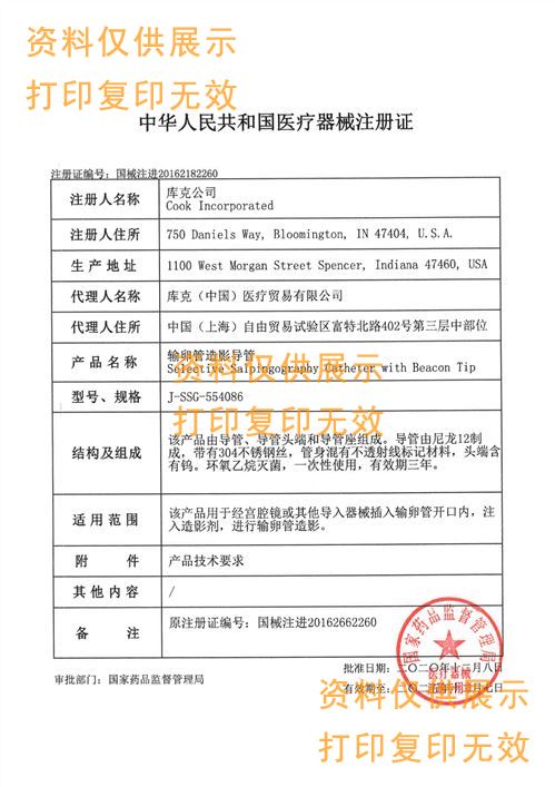 該產品用于經宮腔鏡或其它導入器械插入輸卵管開口內,注入造影劑,進行輸卵管造影。