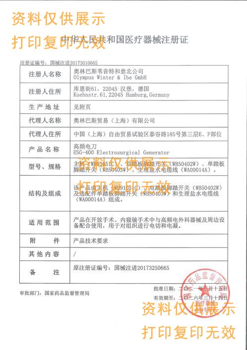 該產品由主機(WB91051C)、雙踏板腳踏開關(WB50402W)及選配件單踏板腳踏開關(WB50403W)和生理鹽水電纜線(WA00014A)組成。額定工作頻率430kHz。單極切割模式最大功率300W,額定負載500Ω;單極凝固模式最大功率200W,額定負載500Ω(軟凝50Ω);雙極切功率100W,額定負載500Ω;雙極生理鹽水下電切功率320W,額定負載75Ω;雙極凝最大功率120W,額定負載75Ω(硬凝25Ω、精細電凝50Ω);雙極生理鹽水下電凝功率200W,額定負載75Ω。 該產品還具有自動啟動功能、自動排煙功能及器械識別功能。
